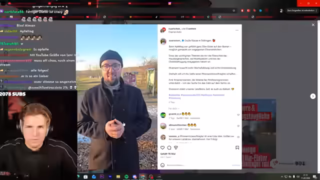 01:46:42Der Streamer konzentriert sich auf die Kommunalwahl im brandenburgischen Landkreis Elbe-Elster. Er stellt den AfD-Kandidaten Norbert Kleinwächter vor, dessen Wahlkampf er als Hetze gegen angebliche illegale Migranten darstellt und kritisiert, dass große rechte Kanäle ihn unterstützen. Als Gegenentwurf präsentiert er Christian Nürbchen, einen gemeinsamen Kandidaten von Grünen und Linken. Lobt dessen positive Agenda, die sich auf soziale Gerechtigkeit, Ehrenamt und bessere Infrastruktur wie Radwege konzentriert. Er äußert sich zwar positiv, gibt aber auch Wahlkampfstrategie-Tipps für mehr Reichweite auf Plattformen wie TikTok.