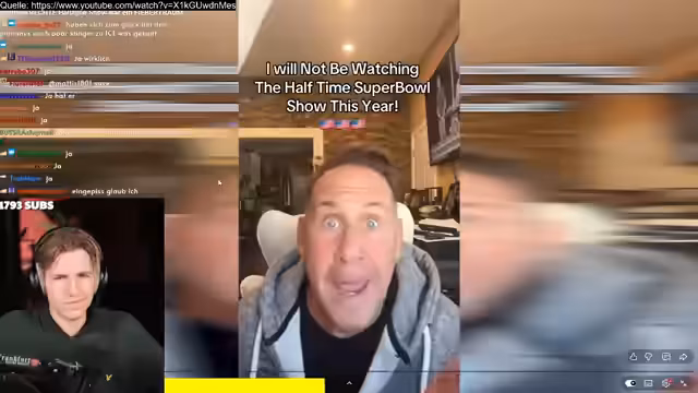 03:44:52Der Streamer und Vincent kommentieren die Performance der alternativen Halftime-Show detailliert. Sie äußern sich verächtlich über die Künstler, die sie als gealtert und unpassend beschreiben. Insbesondere der Auftritt eines weißen Mannes jenseits der 40 wird kritisiert. Der Streamer nutzt das Vorkommen als Symbol für eine generelle Entwicklung und schließt mit der Ankündigung, dieses Thema aufzugreifen. Der Inhalt wird als korny und inhaltsarm abgetan, was zu einer unterhaltsamen, aber scharfen Analyse führt.