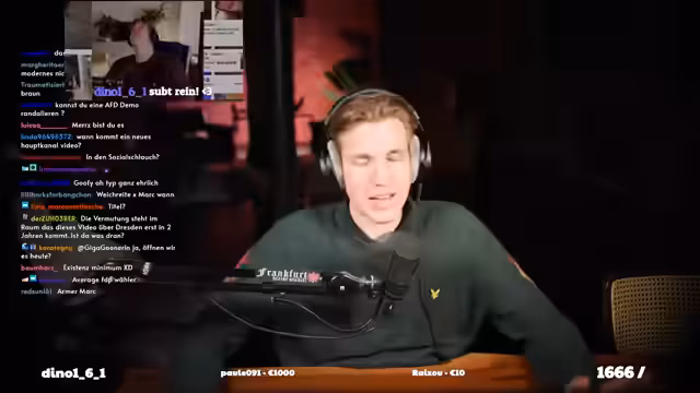Es wurde über den journalistischen Einsatz auf einer Demo in Dresden gesprochen. Der Bericht beschreibt die Konfrontation mit Rechtsextremen und den ungewollten Kontakt mit einem Chat-Mitglied. Des Weiteren wurde ein neues Videoformat namens 'Jubilä-Format' angekündigt und ein Podcast-Start für den 1. März mit Gästen wie Montana Black.