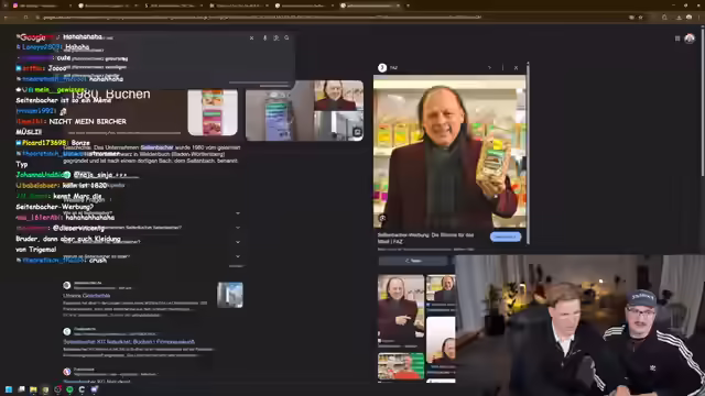 00:46:14Es wird überlegt, ob die Küche eine Insel haben soll oder nicht. Da die Küche hauptsächlich dekorativen Zwecken dient, wird von einer Insel abgeraten. Die Idee, ein eigenes Schokoladenmüsli auf den Markt zu bringen, wird diskutiert. Es wird nach Kontakten zu Nahrungsmittelherstellern gesucht, die bei der Umsetzung helfen können. Es wird über mögliche Kooperationen mit anderen Unternehmen diskutiert, wobei ethische Bedenken bezüglich einiger Firmen (z.B. Veleda, Seitenbacher) geäußert werden. Die NS-Vergangenheit von Veleda, die Kräuter aus dem KZ Dachau bezog und dort Forschung betrieb, wird thematisiert. Die fragwürdige Vergangenheit von Seitenbacher und die Erpressung des Firmenchefs werden ebenfalls angesprochen. Es wird über den Namen des Seitenbacher-Chefs, Willi Pfannenschwarz, und dessen ungewöhnliche Werbespots gewitzelt.