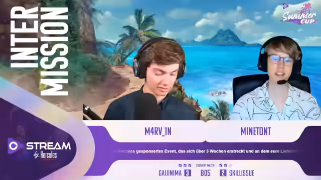 00:00:00Der Stream beginnt mit dem ersten Match des Hercules Summer Cups, einem 4v4 RB Mixed. Die Schrimps starten gegen 5 FPS. Zetsu eröffnet das Match für die Schrimps mit seinem japanischen Flugzeug, während die Gegenseite mit einem schweren Tiger II aufwartet. Nach anfänglichem Map-Control von 5 FPS gelingt es den Schrimps, das Spiel auszugleichen. Ein entscheidender 2 gegen 1 Duell gewinnt Rocket für die Schrimps, sodass das Spiel ausgeglichen wird. Die Schrimps konnten den Sieg knapp mit 1 zu 0 für sich entscheiden, wobei Zetsu vier Panzerkills und einen Flugzeugkill erzielte.