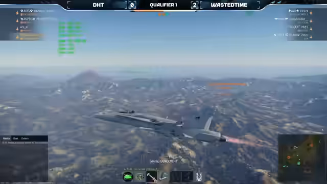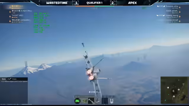 03:46:21Eine 27er mit R-73 und Radarraketen attackierte eine F-18. Die F-18 wich einer Rakete aus, wurde aber von einer weiteren R-77 Rakete getroffen und zerstört. Xapak zögerte, die 27er anzugreifen, was möglicherweise an einer fehlenden Sichtlinie lag. Ein frontaler Treffer im Cockpit der F-18 reichte nicht aus, um sie zu zerstören. Wasted Time gewann das Match mit 3:0, obwohl sich AT in der letzten Runde noch bemühte. Wasted Time muss sich noch für das große Finalturnier qualifizieren, da sie derzeit auf dem neunten Platz liegen und nur die ersten acht Plätze sich qualifizieren.