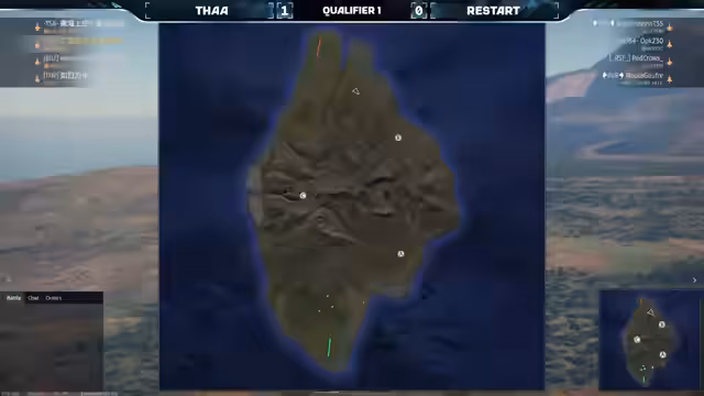 00:19:45Es wird analysiert, dass viele Spieler hoch über die Hügel angreifen, was riskant ist. Die Teams haben fünf Minuten Bedenkzeit zwischen den Runden, um Taktiken zu überdenken. Team Dodek ist bekannt für Last-Second-Taktiken. Es wird hervorgehoben, dass die ersten vier Teams sich für das E-Superiority Major Training qualifizieren können. In der zweiten Runde auf Bourbon Island setzt Restart auf zwei Gripen und zwei Su-27, während THAA eine buntere Mischung verwendet, darunter die F-18C mit über 1000 Gegenmaßnahmen. Die Teams verteilen sich unterschiedlich auf der Karte, wobei THAA etwas mehr streut als Restart. Es wird die Bedeutung von tiefem Fliegen und Raketenabwehr diskutiert.