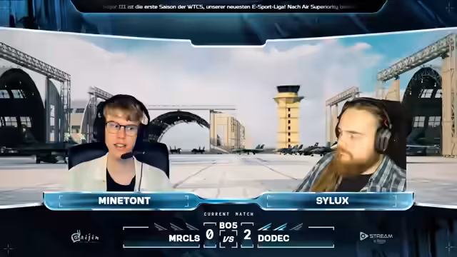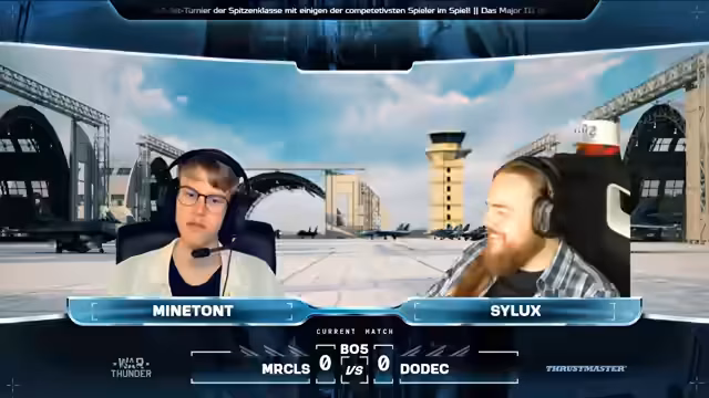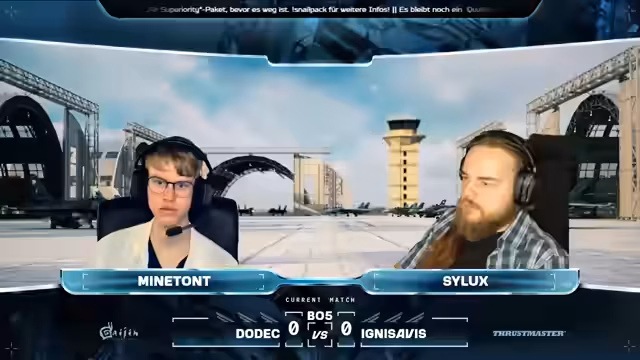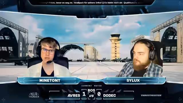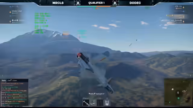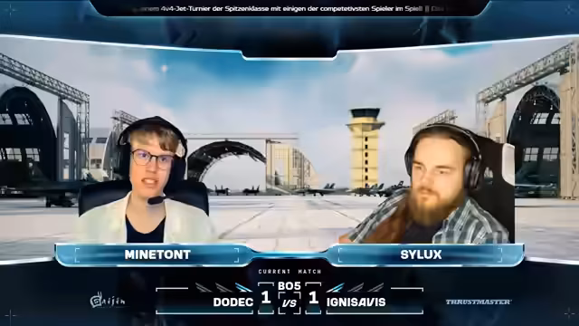 06:33:34Extreme steht kurz vor dem Sieg, während Waste Time zwei Punkte benötigt. Es wird ein kurzer Blick auf das Match zwischen DODEC und CNAs geworfen, wo DODEC mit 2:0 in Führung liegt. Das aktuelle Match ist noch nicht das entscheidende, daher lohnt es sich, dranzubleiben. Das entscheidende Match folgt nach diesem. Die Drops werden etwas später verteilt als gewöhnlich. Der Stream dauert länger als erwartet. Es werden persönliche Anekdoten ausgetauscht, bevor die nächste Runde beginnt. Race Detail und Lars Dimmelat entscheiden sich für die F-18 anstelle der Su-27. Team Xtreme setzt wieder auf zwei Gripen. Die Taktiken bleiben fast gleich, wobei Nick wieder etwas weiter zurückbleibt. Waste of Time versucht, mit zwei Punkten Druck aufzubauen, scheitert aber. Extreme kann sich entspannter fühlen, da sie bereits zwei Matches gewonnen haben. Holly verschießt viele Raketen. Kalf und Maki geraten in einen Head-On ohne Treffer. Subo beschießt Mark, der aber noch fliegen kann, bevor er von Trafi abgeschossen wird. Waste of Time muss sich für nächste Woche erneut anmelden. Extreme macht den Sack schnell zu. Es folgt noch ein Match. DODEC führt mit 3:0 gegen Team CNAs. Als nächstes spielen THAA gegen Team Extreme und Ignis Arvis gegen DoDec. Zwei dieser vier Teams werden sich qualifizieren. Das letzte Match für heute wird Ignis Aves gegen Dodeck sein. Nach diesem Match steht fest, wer sich qualifiziert. Die finalen Matches werden nicht mehr im Stream ausgetragen, sondern dienen nur noch der Festlegung der Startpositionen und der Bestimmung des Gewinners für das Qualifier-Turnier.
