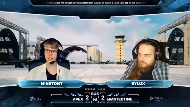 03:15:04Der Fokus verschiebt sich auf das Loser Bracket, wo Teams wie Wasted Time und DHT um den Einzug ins Finale kämpfen. Es werden Drops für die Zuschauer angekündigt, die Premium-Zeit und Booster beinhalten. Es wird betont, dass noch sechs Teams die Chance haben, sich für das Major-Turnier zu qualifizieren. Team Covered hat mit ihrem überraschend starken Auftritt beeindruckt und gilt als vielversprechendes neues Team. Die Teams analysieren die Map Mysterious Valley und entwickeln spezifische Taktiken für diese Karte. Die Wahl der Flugzeuge und Raketen spielt eine entscheidende Rolle, wobei die Teams versuchen, die optimale Kombination für ihre Spielweise zu finden. Wasted Time gewinnt die erste Runde gegen DHT, wobei ARS von DHT mit zwei Abschüssen hervorsticht. Die Teams diskutieren die Severe Damage Mechanik im Spiel und betonen die Bedeutung, Gegner auch in Flat-Spins zu neutralisieren. Die Wahl der Raketen, insbesondere zwischen der AIM-120B und der C-5, wird analysiert, wobei der Initial Pull als wichtiger Faktor im Nahkampf angesehen wird. Wasted Time dominiert die zweite Runde gegen DHT und gewinnt mit 2:0, wobei DHT keine Abschüsse erzielt.