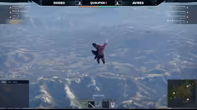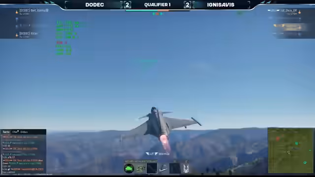 01:34:21Für die zweite Runde tauscht THAA ihre J10A gegen einen Gripin, während Covert auf die J10A wechselt. Beide Teams senden ihre Spieler auf unterschiedliche Zonen der Karte. Covert nutzt die Stärken der F-18 mit ihrer hohen Raketenlast und agiert aggressiv. Team Covert zeigt erneut überlegene Taktik und koordinierte Angriffe und besiegt THAA klar mit 2:0. Dieser Sieg bedeutet die Qualifikation von Covert für das Hauptturnier und den Ausschluss von THAA aus dem Winner-Bracket.