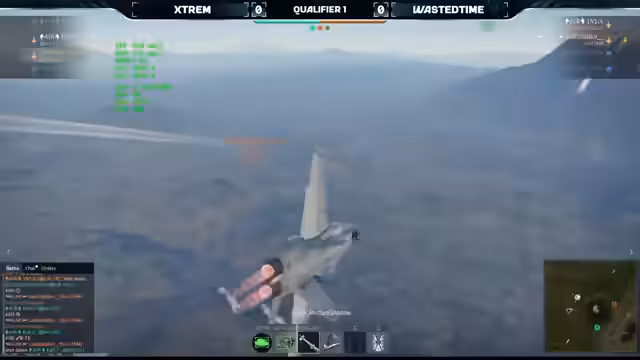 03:44:42Das folgende Match beginnt mit einer intensiven Nahkampfphase, in der die Teams ihre Manövrierfähigkeit unter Beweis stellen. Das Team Wasted Time zeigt hier eine starke Dominanz, indem es in der Startphase mehrere gegnerische Flugzeuge erfolgreich abschießt. Trotz eines zeitweiligen Zählervorteils des Gegners gelingt es Wasted Time, die Situation zu kontrollieren und durch präzise Raketenangriffe das Match klar mit 3:0 für sich zu entscheiden. Dieser Sieg sichert dem Team wichtige Punkte in der Qualifikation.