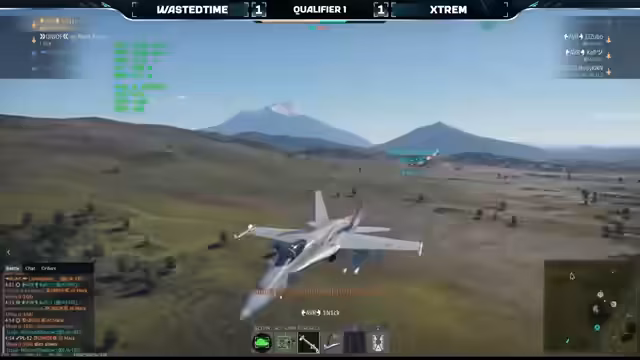 06:25:09Die Ministerin hat gestartet, und es sind F-18, Gripen und J-10 im Einsatz. Die F-18 versucht, den Höhenvorteil zu erlangen, um den Gegner mit dem TWS-Radar frühzeitig zu entdecken. Nick flankiert wieder, während sich zwei Spieler von Xtreme auf A und zwei auf C konzentrieren. Baselheim Nick bleibt hinten. Es werden Long Range 120 Raketen abgefeuert. Die ersten Nahkämpfe finden statt, und Wasted Time verteidigt sich. Eine Rakete geht über den Hügel und wird von Irvis erfolgreich mit Flares abgewehrt. Die AIM-9M erweist sich als wichtige Wahl. Kaffi zieht hoch, um die AIM-9M zu zwingen, zuerst geradeaus zu fliegen und dann über den Hügel zu gehen, bevor sie den Suchkopf senkt. Wasted Time gerät ins Hintertreffen. Kaffi wird von einer J10 abgeschossen, die selbst einen Flügel verliert, aber noch eine Rakete auf Michael Shadow abfeuert. Kaffi versucht, mit einem beschädigten Flugzeug den Gripen zu stören. Wannik jagt Holly, aber es scheint nur eine Täuschung zu sein, da Holly permanent am Flaren ist. Oney versucht, seinem Kollegen zu helfen, ist aber ebenfalls beschädigt und ohne Raketen. Mark holt aus seinem beschädigten Flugzeug noch Kills heraus und reduziert Wondick auf ein 1 gegen 2. Wondick wird von Kaffi beschossen, der aber ausweicht. Wondek versucht mehrfach, zu pullen, hat aber keine Energie mehr und verpasst. Nick kann nicht mehr eingreifen, und LSU hält ihn zu lange auf. Marc holt trotz Beschädigung noch zwei Kills heraus. Extreme steht kurz vor dem Sieg.