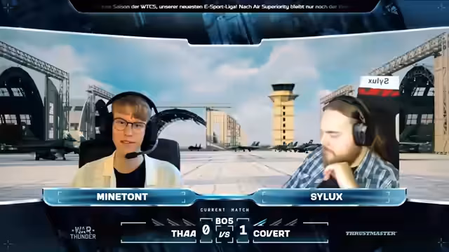 01:34:21Covert hat ihre J10 verloren, während THAA eine Gripen eingewechselt hat. Die J10 hat mehr Raketen und die PL-8Bs. THAA setzt auf einen Zweier-Split, während Covert einen Spieler zum Vulkan schickt. Die F-18 von THAA climbt hoch und schießt mit Aim-120Bs. Es wird erklärt, wie man Raketen ausweicht, indem man 90 Grad zur Rakete fliegt und Gegenmaßnahmen einsetzt. Covert gewinnt das Match mit 2:0 und hat Matchpunkt. THAA hat zwar Restart besiegt, aber es wird schwierig für sie, wenn die Matches länger dauern. Im Loser-Bracket gibt es noch einige Matches, bei denen man sich für das Finale qualifizieren kann. Das Turnier wird bis zum Ende gespielt, um die Startplatzierung im Bracket festzulegen, wobei es auch im Qualifizierungsturnier 1000 GE zu gewinnen gibt.