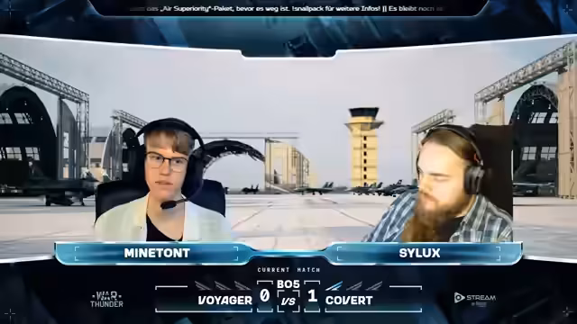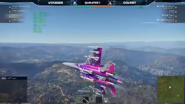 02:22:26Zu Beginn des Matches zwischen Voyager und Covert fehlt ein Spieler im Team Voyager, Moloko, aufgrund von Verbindungsproblemen. Es wird gehofft, dass sich das Problem behebt. Verbindungsprobleme, Stromausfälle und Hardwareprobleme werden als Gründe für fehlende Spieler genannt. Da beide Teams bereits qualifiziert sind, müssen sie nichts mehr befürchten. Moloko kehrt mit seiner 721-Hat-Reconnected zurück, startet aber am Airfield. Don Richard weicht den Raketen von AURUS aus. Es wird beobachtet, dass zu Beginn des Matches ein Flugzeug nach oben geht, um den Luftraum freizuräumen. Die Gripen nimmt den C-Punkt ein und sichert damit den Ticket-Lead für Team Covert. Eine Rakete von Derserk trifft die J10 von Reuel nicht, da sie in die Flares und Chaps geht. Bersack und Weissman liefern sich ein Duell, wobei Bersack ausweichen muss. Moloko versucht als einziger Überlebender noch etwas auszurichten.
