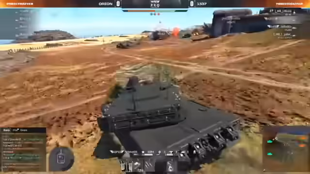 00:59:10Der Start der Runde ist von intensiven Panzergeprächen geprägt. Ein MBT 2000 von Voyager kämpft gegen einen M1A1 von Xtreme, wobei letzterer noch eine intakte Kette besitzt. Der M1A1 versucht sich taktisch zu positionieren und repariert unter Beschuss, eine riskante Aktion. Gleichzeitig wird ein ADATS von Xtreme gespottet, der aktiv an der Front eingesetzt wird und Drohnen oder Raketen einsetzt. Die Luftschlacht beginnt ebenfalls, mit einer Mirage 2000, die versuchen wird, eine F-15 von Xtreme abzufangen, während der Kampf um die Eroberung der Kontrollpunkte (Caps) tobt. Es ist ein dynamisches und unruhiges Beginnen der Runde mit mehreren gleichzeitig stattfindenden Schlachten auf dem Schlachtfeld und in der Luft.