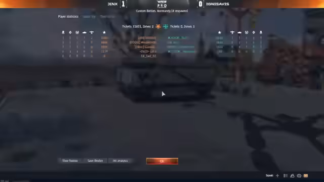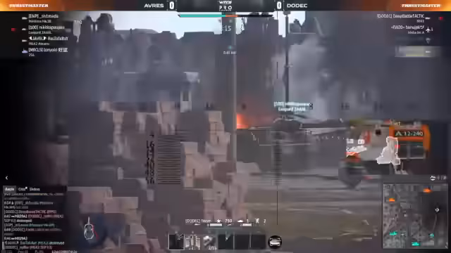 00:52:08Im laufenden Match zwischen Voyager und DODEC findet sich das Geschehen vermehrt auf dem Bodengefechtsschauplatz wieder. Spieler nutzen unterschiedliche Panzer-Loadouts wie den Gepard 2A5 oder spezielle Varianten wie den SEP V2, der an Gewicht verliert, um vielleicht bessere Werte zu erhalten. Es kommt zu Positionsgefechten um den Punkt Bravo. Spieler wie Arseni bei DODEC und 1Qt bei Voyager versuchen, über den commandanten Luke oder durch direkte Beschuss die Oberhand zu gewinnen. Die Kampfweise ist geprägt von vorsichtigem Vorgehen, da Munitions- und Lebensressourcen knapp sind.