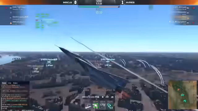 00:57:16Nach den intensiven Duellen in der Luft haben die verbleibenden Flugzeuge, allen voran ein Alpha Jet und eine Mirage 2000, nun Bodenziele im Visier. Der Alpha-Jet versucht, mit verbleibender Munition und nur zwei Magics,Targets anzugreifen, was jedoch scheitert. Die Mirage mit ihren fünf Bomben stellt weiterhin eine große Bedrohung für die gegnerische Flak, wie den Ardatz, dar. Die Bodengefechte bleiben jedoch weiterhin der entscheidende Faktor für den Sieg der Runde, da beide Teams nahezu gleichauf liegen und sich die Kontrolle über die Punkte hart erkämpfen.