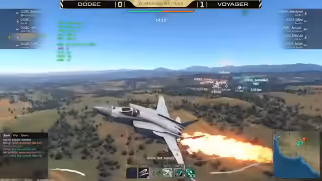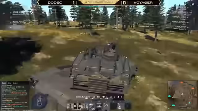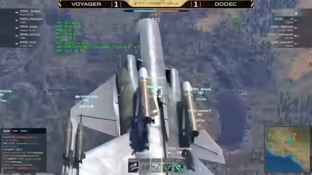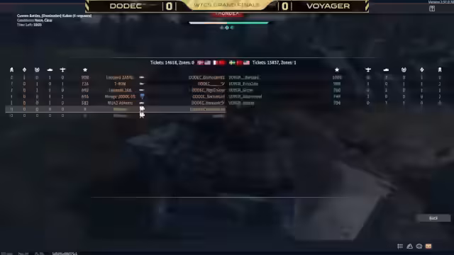 03:47:09Das erste Finalmatch zwischen Dodec und Voyager beginnt auf Kuban. Voyager erlangt sofortige Luftüberlegenheit mit Flugzeugen wie der AV-8C und schießt Dodec-Spieler wie Barbie Girl schnell heraus. Trotz punktueller Erfolge von Dodec, z.B. durch Kills von Grysar, übernimmt Voyager früh die Kontrolle über Caps und Tickets. Kritische Momente sind der Verlust des B-Punktes für Dodec und der erfolgreiche Defense von Voyager mit einem Sergeant-York-Flakpanzer.