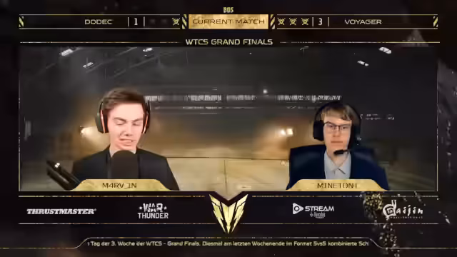 05:17:09Das erste Grand Final-Match zeigt ein hochdynamisches Duell, bei dem DODEC mit starken Starts und Overpressure-Momenten beeindruckt. Voyager kontert mit präzisen Raketenangriffen und Luftabwehrmanövern. Besonders bemerkenswert sind die Bounce-Techniken der Piloten und die strategischen Spawnpunkte. Das Match entwickelt sich zu einem taktischen Schlagabtausch, bei dem beide Teams mit hohem Tempo und Wechselwirkungen zwischen Boden- und Luftfahrzeugen punkten. Die Runden sind extrem eng, mit häufigen Kills und schnellen Positionswechseln, was die Spannung bis zum Ende hochhält.