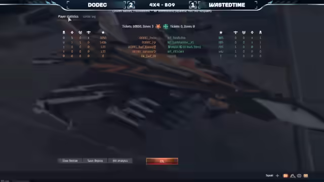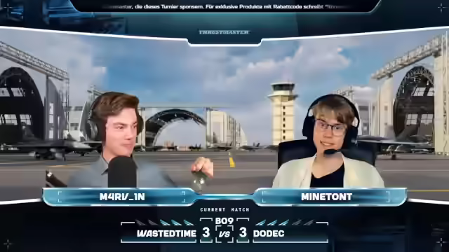 03:52:11Der Stream ist zurück mit dem letzten Matchup zwischen Wastetime und Dodeck. Team Dodek wird vorgestellt, darunter Jay, Nehme, Banu Jack, Gohota, Bad Karma, Babi Goll, Nüffer und Forse. Dodek spielt auf Japanese Port mit einem 2-2er Split, während Waste of Time anders unterwegs ist. Forza macht Druck mit seiner Su-27. Bad Karma ist mit Long-Range-Raketen unterwegs. Bad Karma geht cold gegen eine Rakete. Es gab einen Trade von Jay und Nick. Nur noch Vlad ist am Leben für Wasted Time. Forza scheint es noch gut zu gehen, ist aber gerade im D-Punkt. Forza spammt R-77er auf Last Blood. Last Blood connectet mit einer 9M in Forza's Flugzeug. Forze probiert wegzurennen, aber es gelingt ihm nicht. Das 1 zu 0 für Wasted Time. Die Statistik des Matches wird gezeigt. Wasted Time wird vorgestellt, darunter Lars Vlad, Nick, Marc, Irbis und Pacific Fox. Wasted Time wurde letztes Jahr im Januar gegründet. Das Objektiv für die WTCS ist, ihr Bestes zu geben. Dodek nutzt den gesamten Timer in der Lobby aus. Dodek hat ihren Fokus auf den Homecare, auf den A-Punkt.