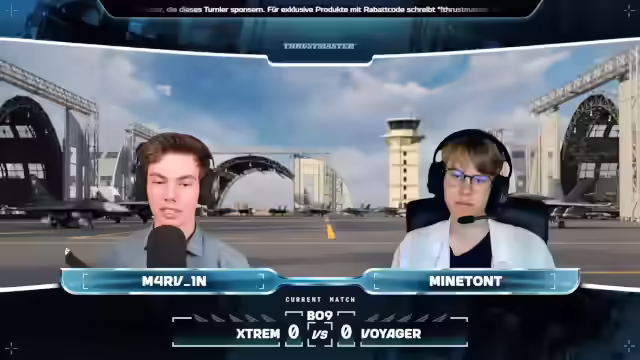 00:11:33Der Stream beginnt mit der Begrüßung der Zuschauer zum Playoff Tag 2 des RCPLT 2025. Es werden vier spannende Matches angekündigt, beginnend mit Covert gegen Five Stakes. Ein besonderer Dank gilt den Sponsoren, allen voran Thrustmaster, dessen aktueller Trailer gezeigt wird. Thrustmaster bietet mit dem Code WTTM 10% Rabatt auf alle Flugprodukte bis zum 19. Oktober. Thrustmaster ist ein langjähriger Anbieter von Flugsimulationsprodukten für verschiedene Zielgruppen, von Einsteigern mit der T-Flight Hotas Serie bis hin zu High-End-Produkten mit lizenzierten Artikeln der US Air Force. Streamer Herkules wird ebenfalls als Pionier in interaktiver Audio-Unterhaltung vorgestellt, mit Produkten wie dem Stream 100 und Stream 200, die Audio-Steuerung für Gamer und Streamer vereinfachen. Der Stream 200 bietet erweiterte Funktionen wie Audiosplit und XLR-Mikrofonunterstützung.