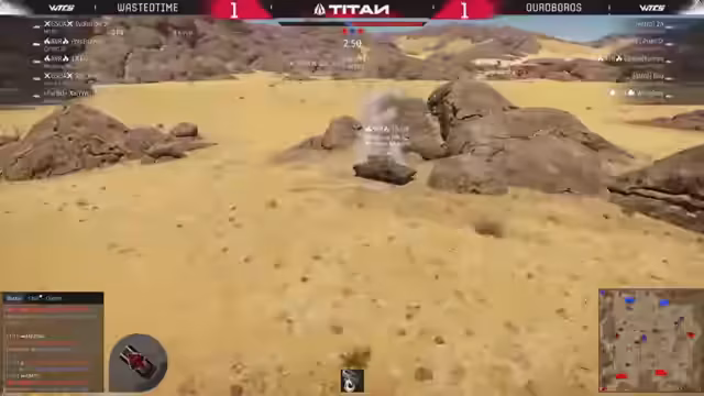 00:21:17Das erste Match zwischen den Teams Oroboros und Wasted Time auf der Sinai-Karte beginnt. Nach anfänglichem Sparring gewinnt Oroboros die erste Runde knapp. Das Team zeigt eine gute Map-Control, hält die Caps und nutzt die günstigen Spawn-Positionen seiner Spieler, insbesondere des Piloten Xalivero. Wasted Time kann durch starke Bodenoffensiven mit Spielern wie Panzergranaten-Enjoyer kurzzeitig Druck aufbauen, kann den Ticket-Vorteil von Oroboros am Ende jedoch nicht mehr drehen.