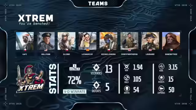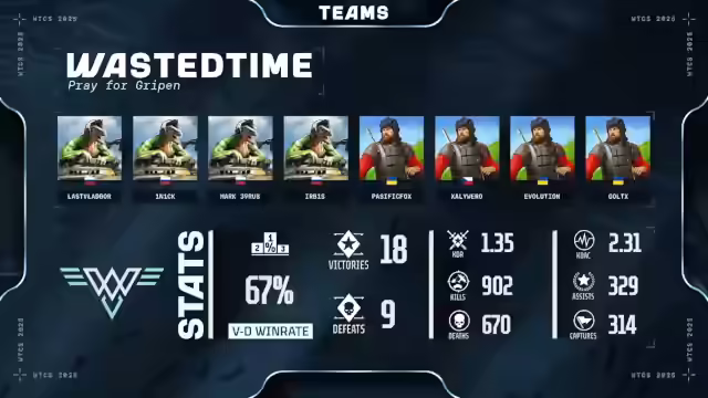 03:01:08Es werden die Spieler von Wasted Time vorgestellt, beginnend mit Firstline-Player, einem 21-jährigen Su-27 Piloten aus Russland, gefolgt von Irbis, der seine Orientierung übt. Pacific Fox, ein 22-jähriger, der sich scheinbar mit Computern auskennt. Xalivero, 21 Jahre alt aus Tschechien, spielt eher ruhig und hält wichtige Positionen. Evolution, 24 Jahre alt aus der Ukraine, passt sein Spiel der Situation an. Goldix, bekannt als Seawolf, 23 Jahre alt und ebenfalls aus der Ukraine, soll im realen Leben Seefahrer sein. Das Team wurde im Januar 2024 gegründet und hat bisher nur einen Spieler verloren. Ihr Ziel für die WTCS ist es, ihr Bestes zu geben und viele Punkte zu sammeln, um sich für den Thunder Cup zu qualifizieren. Waste of Time hatte sich auch für das Mixtunition qualifiziert und Charly, Evolution und Goldtick sind ja auch eher Panzerfahrer. Ich denke mal, dass das Ziel sein wird, nachher auch in den Thunder Cup reinzukommen.