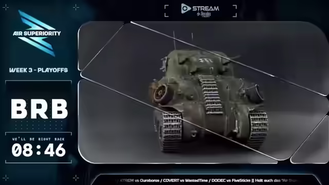 01:13:00Moloko wird von oben abgeschossen, wodurch die Gripen einen Flügel verliert. Voyager gleicht zum 3:3 aus, was das Match spannend macht. Es wird diskutiert, dass auch im Loser-Bracket noch Chancen bestehen, ins Finale zu kommen. Die Abschussstatistiken werden genannt. Die Moderatoren werden gefragt, ob sie aktiv War Thunder spielen, was sie bejahen. Sie verweisen auf den Turnierservice TSS im Chat, wo man sich für Turniere anmelden und Preise gewinnen kann. Es gibt Turniere für verschiedene BR-Ranges, auch für Anfänger. Aktuell läuft der Thunder Cup, die nächste Chance zur Qualifikation für ein Major-Turnier ist wahrscheinlich im Titan-Tournament im nächsten Jahr. Die Moderatoren fixen den Greenscreen und führen einen Chat mit den Zuschauern. Es wird über die Menge an Golden Eagles diskutiert, die man in Turnieren gewinnen kann, und es gibt Kadett-Turniere für Anfänger. Es wird noch etwa eine Minute bis zum nächsten Start diskutiert, und die Wichtigkeit einer guten Crew für Turniere wird betont.
