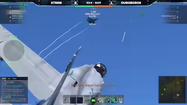 01:01:46Der Fokus liegt auf den Flugzeugbewegungen und Raketenangriffen beider Teams. Ares zeigt eine eher defensive Haltung, während Voyager aktiv auf den A-Punkt zudrängt. Es kommt zu ersten Raketenabschüssen, wobei AUGUS' Radar in den IR-Modus wechselt, um gefährlichen IR-Raketen auszuweichen. Voyager fliegt zurück zum Home Cap, während Ares sich hinter dem A-Cap verschanzt. Voyager pusht aktiv auf den A-Punkt, während Ares eher verteidigt und versucht, den Ticket-Beat über den C-Punkt zu holen. Es kommt zu einem 3 gegen 3, bei dem Bongo eliminiert wird, was gefährlich werden könnte. Moloko wehrt eine Rakete ab, bevor er Russian Shark gegenübersteht. Es kommt zu vielen abgewehrten Raketen und dem ersten 'Erdnagel' des Tages. Runaway versucht vergeblich, gegen Auros zu 'notchen', während eine E-Air auf Moloko abgefeuert wird. Ein zweiter 'Erdnagel' wird knapp verhindert. Moloko versucht, vor einer Gripen zu fliehen, was eine gute Taktik ist, da er im Dogfight unterlegen wäre. Russian Shark hat nur noch GUNS. Eine Su-27 wird von einer R-73 getroffen, was die Stärke dieser Rakete im Dogfight betont. Voyager ist nur noch im 2 gegen 2.