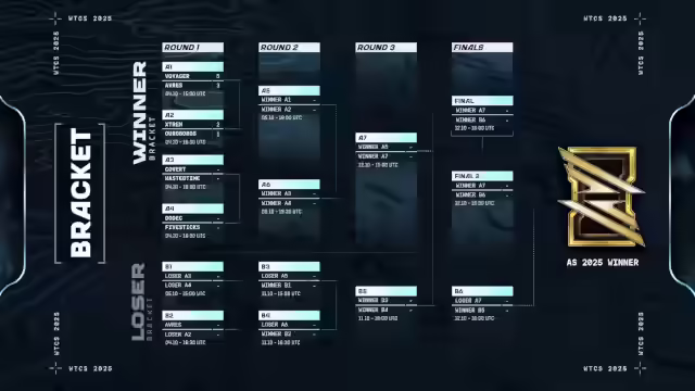 00:25:11Es wird erklärt, dass im Playoff-Modus ein Best of 9 gespielt wird, wobei ein Team mindestens fünf Punkte für den Gesamtsieg benötigt. Die Runden sind auf zehn Minuten begrenzt. Team Voyager startet mit Moloko, Erchen und Wiseman in den Kampf, während Averys mit zwei Gripen C und zwei Zoos 27 SMs antritt. Die erste Runde findet auf der Karte Red Desert statt, die im Qualifikationsturnier selten zu sehen war. Moloko erzielt schnell einen Abschuss auf Russian Shark, was Voyager einen Vorteil verschafft. Auris findet einen weiteren Abschluss auf Runaway. Legendbongo wird beschädigt und Dato von Averys wird ebenfalls abgeschossen. Voyager gewinnt die erste Runde mit 1:0, wobei Averys ohne Abschüsse bleibt. Es wird angemerkt, dass Averys Probleme hatte, während Voyager dominant spielte. Die Spieler von Team Hyde, die jetzt zu AVReS gehören, müssen sich zusammennehmen.