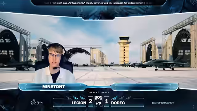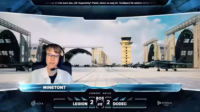 02:48:35Miracles im Loser Bracket. Nicht offiziell, aber von den Spielern ist halt auch einiges dann zu AVR eSports übergeschwappt. Wir schauen uns jetzt als nächstes Team Legion gegen Team Dodeck an. Es steht zur Zeit bei Legion gegen Dodeck, wie ich sehen kann. Zwei Punkte für Legion, ein Punkt für Dodeck. Team Legion unterwegs mit zwei Su-27ern, einer Gripen, einer J-10A, währenddessen Team Dodek unterwegs mit drei Su-27ern tatsächlich und noch Jay in der Gripen. Das ist sehr interessant. Sehr viele Su-27er hier auf jeden Fall und tatsächlich das erste Match, glaube ich, wird tatsächlich gar keine F-18 sehen. Diesmal sehen wir aber eine andere Taktik von den Teams, denn wie es ausschaut werden drei Spieler zum C-Punkt geschickt, aber auch jeweils ein Spieler entscheidet sich den B- und den A-Punkt zu holen. Somit da schon mal eine etwas andere Taktik als in den letzten Matches, die wir gesehen haben.