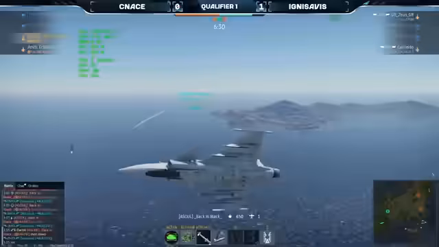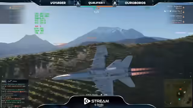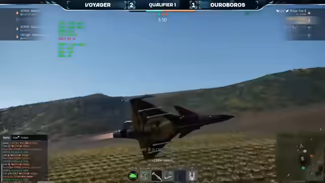 01:40:50Die Teams zeigen eine ähnliche strategische Grundausrichtung wie zuvor, jedoch mit unterschiedlichen Ausführungen. Ouroboros verteilt seine Spieler eher, während Voyager geschlossen den B-Punkt attackiert. Ouroboros konzentriert sich auf die Punkte A und C, behält aber einen Spieler zur Absicherung des Flugfelds zurück, um von dort aus Raketen auf Team Voyager abzufeuern. Megan Fox erobert den A-Punkt, während seine Teamkollegen bereits den C-Punkt einnehmen, wodurch der D-Punkt aktiviert wird, der strategisch günstig für Ouroboros liegt. Voyager nähert sich dem Vulkan, während Auris Elite mit seiner Su-27 etwas Abstand hält. Supreme verhält sich zunächst defensiv, feuert dann aber seine A120C5er ab. Die F-18 wird aufgrund ihrer umfangreichen Gegenmaßnahmen bevorzugt. Aurus erzielt einen Abschuss auf Mitchell Britt von Ouroboros mit einer R27ER, während Moloko einer Rakete ausweicht, indem er sie in den Boden lenkt. Moloko wird später von einer Rakete von Megan Fox getroffen. Eine R-73 von Megan Fox trifft Supreme. Aurus fliegt sehr nah am Boden, um einer Rakete zu entgehen, was für Team Ouroboros ungünstig aussieht.