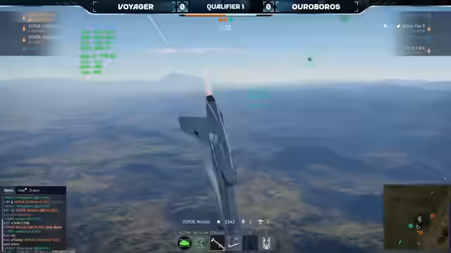 01:51:08Das Spiel wird fortgesetzt, wobei Megan Fox erneut die Su-27 fliegt. Ouroboros ändert seine Aufstellung nicht, während Voyager weiterhin auf Erchen in der J-10 und eine ansonsten identische Aufstellung setzt. Ouroboros verteilt sich wieder auf der Karte, während Voyager geschlossen bleibt und sich auf den Bereich um den Vulkan konzentriert. Ouroboros liebäugelt mit dem C-Punkt, um den D-Punkt zu aktivieren. Megan Fox nimmt den B-Punkt ein, während Moloko hoch fliegt und Gegenmaßnahmen einsetzt. Win wird von Aurus mit einer R-27 abgeschossen, was eine interessante Wahl für diese Rakete darstellt. Aurus erzielt seinen zweiten Abschuss gegen Supreme, wodurch nur noch Samus und Megan Fox gegen vier Spieler von Voyager übrig bleiben. Megan Fox trifft Erchen. Samus hat nur noch eine Rakete und weicht einer Rakete in Bodennähe aus. Aurus schießt eine Rakete auf Megan Fox, die trifft, wodurch nur noch Sabathus übrig bleibt. Samusus wird von einer L&M getroffen, wodurch Team Ouroboros vollständig ausscheidet. Team Voyager gewinnt das Match mit 3:1 und bleibt im Gewinnerbaum.