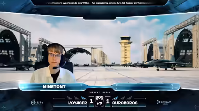 01:45:01Team Voyager gewinnt die Runde schnell mit 2:1, was einen Umschwung zum vorherigen Match darstellt. Aurus spielt mit drei Abschüssen herausragend, was die Bedeutung der Su-27 im Team unterstreicht. Voyager lässt die vorherige Niederlage nicht auf sich sitzen und dreht das Spiel gegen Ouroboros um. Voyager benötigt nur noch einen Sieg, um im Gewinnerbaum zu bleiben, während Ouroboros in den Verliererbaum absteigen würde, was sie vermeiden möchten. Die Teams haben vier Minuten Zeit, um ihre Taktiken zu besprechen. An diesem Wochenende qualifizieren sich vier Teams, und nächste Woche im Open Qualifier Nr. 2 qualifizieren sich weitere vier Teams, sodass insgesamt acht Teams am ersten Priority teilnehmen. Dieses Turnier findet an den Wochenenden 27./28. September und 4./5. Oktober statt und bietet die letzte Möglichkeit, Thunder Points für die Qualifikation zum Grand Finale zu sammeln. Team AVR eSports führt die Liste an, in die alle WTCS-Turniere einfließen. Team Voyager liegt derzeit auf dem vierten Platz, während sich Ouroboros noch nicht qualifiziert hat und daher noch keine Thunder Points sammeln konnte.