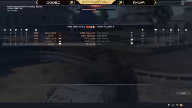 01:10:06Die Kommentatoren erläutern den Spielmodus 'KurzRBM', der realistische Fahrzeugphysik mit Markern über den Gegnern kombiniert, sobald diese in Sichtlinie sind. Dieser Modus wird von Turnierspielern bevorzugt, da er das Gameplay dynamischer gestaltet. Im weiteren Verlauf des Matches entwickelt sich ein intensiver Kampf um die Kontrolle der Caps. Bidifu von RAW muss sich vom C-Cap zurückziehen, als Barbie Girl und Force auf ihn zukommen. Trotzdem gelingt es Force, einen wichtigen Kill an BDFU zu erzielen. Die Strategie von DODEC, Rauchkerzen taktisch einzusetzen, wird hervorgehoben. Ein kritischer Moment entsteht, als Force versucht, Twister zu baiten und dabei von Barbie Girl unterstützt wird, um eine Push-Möglichkeit zu schaffen. Der Autoloader von Force wird dabei beschädigt, und Bidifu hält einen entscheidenden Winkel. Der Kampf spitzt sich zu, als Force in Brand gerät, was zu einem 'interessanten Brawl' führt. Die Ticket-Anzeige zeigt einen fortgeschrittenen Zustand an, und die Kommentatoren spekulieren über mögliche Misskommunikationen oder geplante Opfer, wie das von Barbie Girl, um Force eine bessere Position zu ermöglichen.
