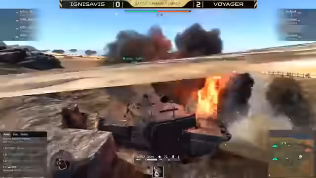 01:39:16Für Team Ignis Arvis spielen Master Delta, Zyrex, Imperiuser und Nefo. Ihr Lineup umfasst einen M1A1, eine ZEZ, einen Black Knight und Nefo in einem ZEB V2. Die gespielte Map ist eine spezielle Thunder Cup Normandy-Variante mit einem Home Cap für jedes Team (einer am Beach, einer oberhalb der Stadt) und dem B-Cap an seiner üblichen Position. Voyager hat einen anfänglichen Cap-Vorteil und bereits die erste Runde gewonnen. Die Kommentatoren sind gespannt, wie sich der Leclerc im Spiel schlägt, da er zum ersten Mal zu sehen ist und bereits einen Schuss von unten nach oben abgegeben hat. Die 'Siegessäule' wird als 'Monument' im E-Sport-Bereich bezeichnet. Greaser gelingt ein entscheidender Schuss auf Master Delta, und Bearipot eliminiert Zyrex, was Ignis Arvis in der zweiten Runde in eine schwierige Lage bringt. Arseni macht Druck am Homecap von Ignis Arvis, und Voyager kontrolliert die gesamte Stadt. Nefo ist isoliert am Monument und kann wenig ausrichten. Die Runde sieht für Ignis Arvis nicht gut aus. Die Kommentatoren vergleichen die Panzerung der Zep V2s in diesem Match mit früheren Spielen und stellen fest, dass sie hier aufgrund der Zufallspanzerung besser abschneiden. Der Black Knight wird entfernt, und Nefo versucht, Druck auf den Home Cap der Gegner auszuüben. Eine Rakete von Grota trifft die ZDZ, wodurch der Autoloader beschädigt wird und Reparaturen notwendig sind. Barrel-Parts landet einen Treffer auf Master-Velder, aber die Runde scheint für Ignis Arvis verloren zu sein. Voyager gewinnt den nächsten Punkt.