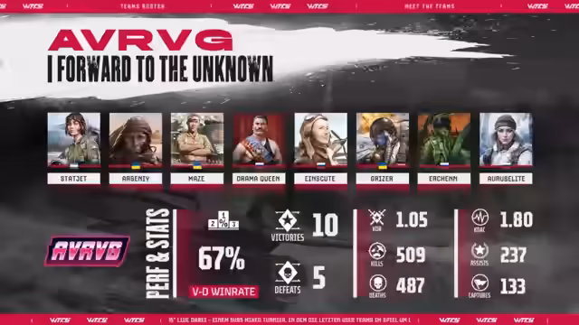 01:34:16Das Team DoDec wird vorgestellt: es besteht aus Forse, Nehme, Banocek, Jay, Grota, Barbie Girl und Neva. Das Team wurde Ende 2023 gegründet und hat bereits an mehreren Turnieren teilgenommen, darunter dem ThunderCup 2024 und Air Security 2024. Ihr Ziel ist der Sieg in der War Thunder Championship Series.