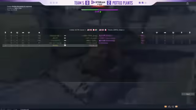 00:34:43In der zweiten und dritten Runde setzt sich Potted Plants mit gleicher Strategie durch. Team 5 tauscht Nofi gegen Fluffy Schieb aus, kann aber die Dominanz nicht brechen. Potted Plants kontrolliert Schlüsselpunkte auf der Karte wie das Monument und greift effektiv an. Die Luftkämpfe zwischen Willisie und Fluffy bleiben spannend, doch Potted Plants behält die Oberhand. Das Team gewinnt beide Runden souverän und steht mit 3:0 im Match, wobei besonders Game Thunder und Sonny mit Abschüssen überzeugen.