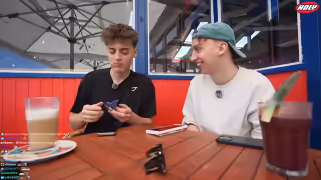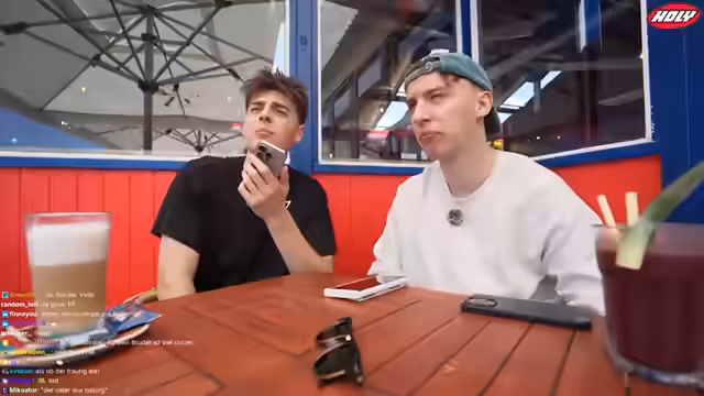 00:52:17Nach der Entscheidung, im Café zu frühstücken, kommt es zu einer chaotischen Bestellung. Beide sind sich nicht sicher, was sie nehmen sollen, und die Anzahl der gewünschten Kuchen sorgt für Verwirrung. Streamer 1 bestellt schließlich eine Joghurt Bowl, während bei Streamer 2 Pancakes und zwei Apfeltarten landen. Die Bestellung wird humorvoll vom Personal aufgefasst und beide Streamer lachen über die absurde Situation ihrer übertriebenen Wünsche.