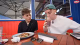 01:43:20Hugo wird vorgeworfen, immer zu viel Essen zu bestellen und nicht alles aufzuessen, was mit einem Vergleich zu hungernden Kindern in Afrika kommentiert wird. Die Frage, wer die Kosten für das Essen übernimmt, bleibt zunächst ungeklärt. Die Gruppe beschließt, einen Spaziergang zu machen und dabei Fotos mit Fans zu machen, was zu einem kurzen, unangenehmen Gespräch mit einer Passantin führt.