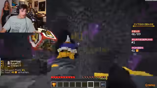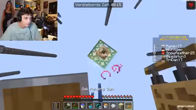 03:18:58Zu Beginn des Streams dominieren intensive Kämpfe in Minecraft Risiko. Die Spieler diskutieren ihre Item-Ausstattung, darunter Half-Netherite und Fire-Respot, und beklagen fehlende Waffen oder Rüstungen. Es entstehen humorvolle und gestresste Interaktionen, wie die Aufforderung 'Komm rüber' in Spannungssituationen. Wichtige Entscheidungen über den Einsatz von Totems und Stärke-Tränken werden getroffen, während die Druckzunahme durch einen ablaufenden Timer deutlich wird. Die Dynamik zeigt sich in schnellen Attacken und der Herausforderung, Positionen in einer engen Skyblock-Map zu behaupten. Diskussionen über Kamele und Sicherheitsmaßnahmen unterstreichen den taktischen Aspekt des Spiels, während die Runde als entscheidend für das gesamte Video betont wird.