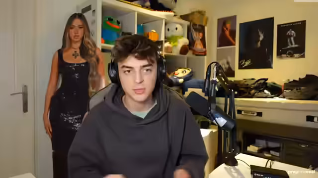 00:54:05Der Streamer spricht über ein persönliches Lieblingsvideo, das er als besonders 'wholesome' empfindet und das ihn stark berührt, bis er sich fühlt, als wären die Personen im Video wie Adoptiveltern. Er erwähnt Marsha und Kevin, die auf einem Flohmarkt in New York ein Poloshirt gesehen haben, das an Jojo erinnert, den er bei den Videodays kennengelernt hat. Dabei wird überlegt, solche Motive als Merchandise zu nutzen, aber er äußert Bedenken, da es zu generisch wirken könnte und nicht authentisch erscheint. Dies führt zu einer Diskussion über ein peinliches Edit-Video, in dem er aus einer schlecht gelaunten Situation gefilmt wurde, und er ärgert sich über dessen Verwendung.