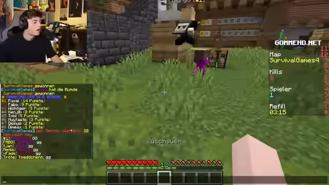 00:12:05Um 15 Uhr startet das "100 Spieler vs. Wichtiger"-Event auf Statoxien, worauf er sich sehr freut. Er lobt die enge Zusammenarbeit mit Zatoxin und betont, dass sein Builder auch für Zatoxin tätig ist. Um 16 Uhr folgt ein 500-Euro-Minecraft-Schwitzer-Turnier mit einigen der besten deutschen Spielern auf Gomme, darunter Sky Wars, Bed Wars und Jump League. Der Gewinner erhält den gesamten Preispool. Er hofft, selbst zu gewinnen. Namen wie Fuchsel, Fabo, Mika Goated, Hui, Blatt und Dima werden als Teilnehmer genannt. Er freut sich auf die bevorstehenden Minecraft-Aktivitäten und das Turnier mit den genannten bekannten Spielern. Nach den Turnieren ist der Abend offen für weitere Aktivitäten, je nach Stimmung und Verlauf der Events.