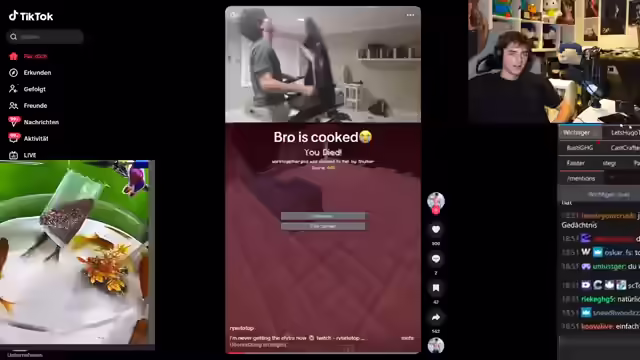 01:33:24Während des Spiels gegen die 200 Spieler erlebt er Schwierigkeiten und bittet um Hilfe. Er bemerkt, dass er brennt und entscheidet sich, eine Pizza zu bestellen. Es folgt eine Diskussion mit dem Chat über die Essensauswahl, wobei verschiedene Optionen wie Döner, Spaghetti Carbonara und Pizza Margarita in Betracht gezogen werden. Schließlich entscheidet er sich für Penne Carbonara und eine Calzone für seine Mutter. Er fragt den Chat nach den Vorlieben seiner Mutter, da er ihr eine Überraschung machen möchte. Nach der Essensbestellung freut er sich auf die Lieferung und erwähnt, dass es noch 20 bis 45 Minuten dauern wird. Er betont, dass das Minecraft-Turnier, an dem er teilnehmen wird, sehr intensiv sein wird und erkundigt sich, ob eine Teilnehmerliste vorhanden ist.