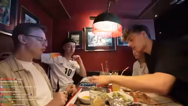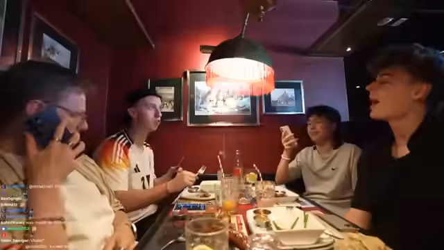 04:10:10Nach dem Essen im Restaurant äußert die Gruppe Unzufriedenheit mit der Qualität. Insbesondere wird bemängelt, dass das Steak gummiartig war und ein Haar in einem Gericht gefunden wurde. Als Reaktion auf den schlechten Service und die Qualität geben die Streamer eine extrem negative Bewertung für das Restaurant ab und reduzieren die Bewertung drastisch, was eine negative Reaktion im Chat auslöst.