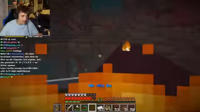 01:17:31Während der Minecraft-Challenge haben die Zuschauer die Möglichkeit, durch Buchstabieren von Wörtern wie TNT oder MLG Mobs und Gegenstände ins Spiel zu spawnen. Der Streamer sammelt Ressourcen, baut Rüstung und versucht, das Spielziel zu erreichen. Er zeigt Frustration über die mangelnde Koordination im Chat, findet aber auch humorvolle Momente, als bestimmte Wörter zu spät oder zu früh eingegeben werden und so das Spiel verändern.