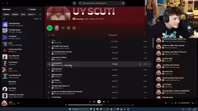 02:09:34Der Streamer zeigt große Leidenschaft für Musik und schlägt ein Song Battle mit den Lieblingskünstlern der Community vor. Dazu gehören The Weeknd, Travis Scott, Post Malone, Drake und Rihanna. Er möchte eine 16-Künstler-Konstruktion mit den besten Songs jeder Künstlerin schaffen, weil ihm kreative und kulturelle Ausdrucksformen besonders wichtig sind.