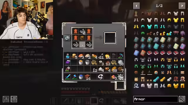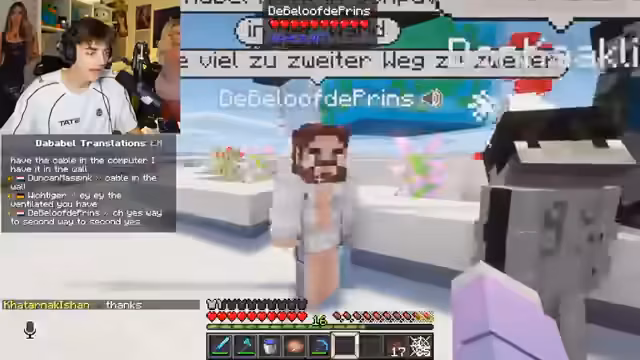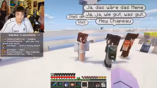 00:40:27Ein Diamant-Upgrade für den Backpack wird erfolgreich hergestellt, was das Fassungsvermögen erheblich erweitert. Dies markiert einen wichtigen Meilenstein im Spiel. Gleichzeitig steigt die deutsche Community im Chat stark an, was zu interaktiven Momenten und Verständigungsproblemen aufgrund der Übersetzungssoftware führt.