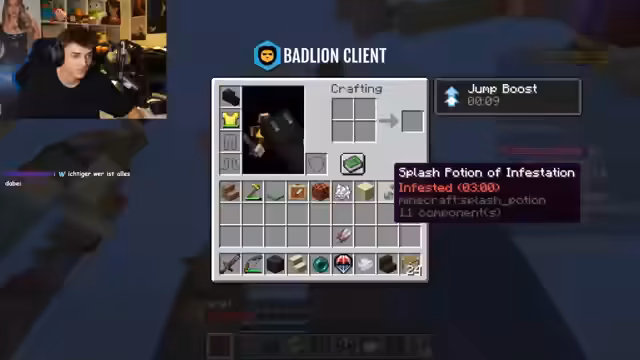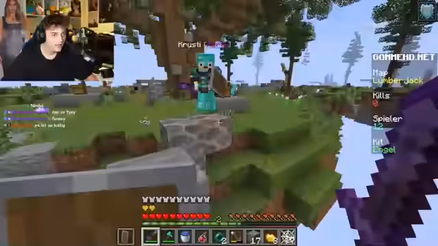 06:44:22Der Streamer erlebt intensive Skywars-Kämpfe, bei denen er Items wie Axt, Fledermaus und Pfeil einsetzt. Er beschreibt dramatische Situationen, in denen er knapp dem Tod entgeht und seine Gegner mit verschiedenen Taktiken und Items konfrontiert. Der Fokus liegt auf der actiongeladenen Jagd auf Kills und dem Erwerb von Ausrüstung wie Totems, Schilden und Tränken, um im Spiel zu überleben und vorne zu bleiben.