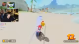 01:39:58Ein Out-of-Map-Shortcut auf der Airship Fortress-Karte wird entdeckt und analysiert. Der Shortcut startet in der ersten Kurve rechts, dann links, und nutzt einen Sprung in der Mitte. Der Streamer stellt fest, dass es nur im Free Roam funktioniert, nicht im Zeitfahren, und es ist unklar, ob es im echten Spiel funktioniert.