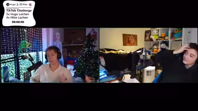 03:31:59Die Challenge beginnt mit der Abfolge, in der Hugo fünf TikToks vorzeigt. Die Regeln sind strikt: Kein Lachen, keine Geräusche, Grimachen sind ebenfalls verboten. Der Streamer zeigt beeindruckende Disziplin, aber bei einem Video mit einem 'Schneider-Gebiss' bei Hugo bricht er zusammen und lacht leise. Hugo kontrolliert dies nicht korrekt, was zu einem Streit über die Punktzahl führt. Die Herausforderung setzt sich fort, und es werden weitere, mehrdeutige Videos gezeigt. Die Spannung steigt, da der Streamer ständig versucht, Hugo zum Lachen zu bringen, während Hugo seinerseits die Anstrengung des anderen untergräbt. Die Finalpunktzahl steht auf 3:3, was den Kampf offen hält.