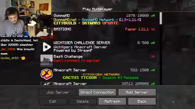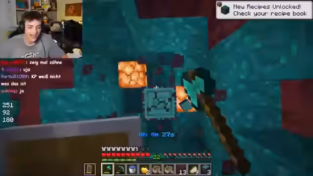02:29:25Nach einer längeren Pause setzt der Streamer sein Minecraft-Spiel fort und befindet sich in einer prekären Situation mit nur 18 verbleibenden Herzen. Auf Anraten des Chats beschließt er, für seine Sicherheit in eine tiefere Ebene abzusteigen. Er begegnet einem lauten Geräusch, was ihn in Panik versetzt. Er kehrt in die Overworld zurück, um nötige Ressourcen zu farmen, stellt jedoch fest, dass die Vorratskiste leer ist, was zu großer Frustration und technischen Verwirrung führt. Bei der Suche nach neuen Ressourcen stirbt er unerwartet in einem Kampf, was ihn sehr traurig und verärgert macht, da er auf eine gute Belohnung gehofft hatte.