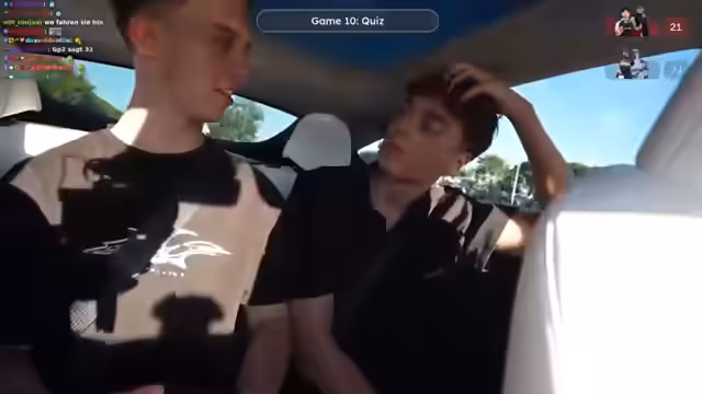 03:08:39Auf dem Weg zum Strand wird ein spontanes Quiz als Zeitvertreib für die Autofahrt inszeniert. Dabei muss ein Teammitglied das Fahrzeug steuern und ein anderes die Schätzfragen beantworten. Die Fragen decken ein breites Spektrum an Allgemeinwissen ab, von der Erfindung des Telefons bis hin zu YouTube-Statistiken. Die Atmosphäre ist angespannt, da schnelle Schätzungen ohne die Nutzung von Hilfsmitteln verlangt werden, was zu intensiven Diskussionen und einer deutlichen Führung eines Teams führt.