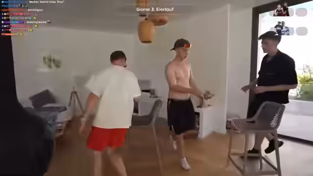 00:37:28Der Streamer und seine WG-Kollegen beginnen mit der angekündigten 2vs2-Olympiade. Teams werden durch das Glücksrad gebildet, und es kommt sofort zu humorvollen Spannungen und neckischen Kommentaren innerhalb der Teams. Hugo wird beobachtet, wie er sich einschmiert, was eine Reaktion auslöst. Die Teamzuteilung sorgt für Diskussionen, wer mit wem teamen möchte, und der Streamer äußert Bedenken bezüglich der Ausgewogenheit der Teams. Das erste offizielle Spiel, Pool-Tisch Ballwechsel, wird vorgestellt und Teams beginnen, ihre Strategien zu planen.